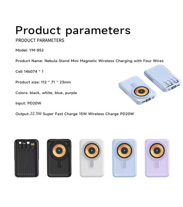 Wireless Charger Magnetic & Built-in Cables 66W Fast Charging Portable Power Bank 10000mAh (Random Color)