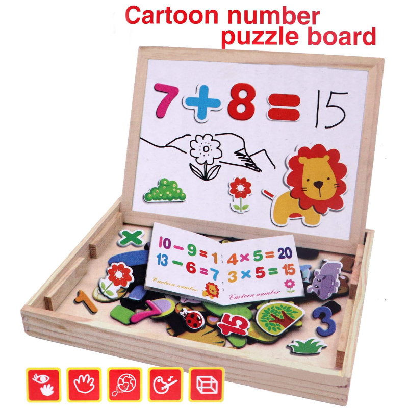 Wooden Magnetic Black And White Board With Cartoons And Numbers