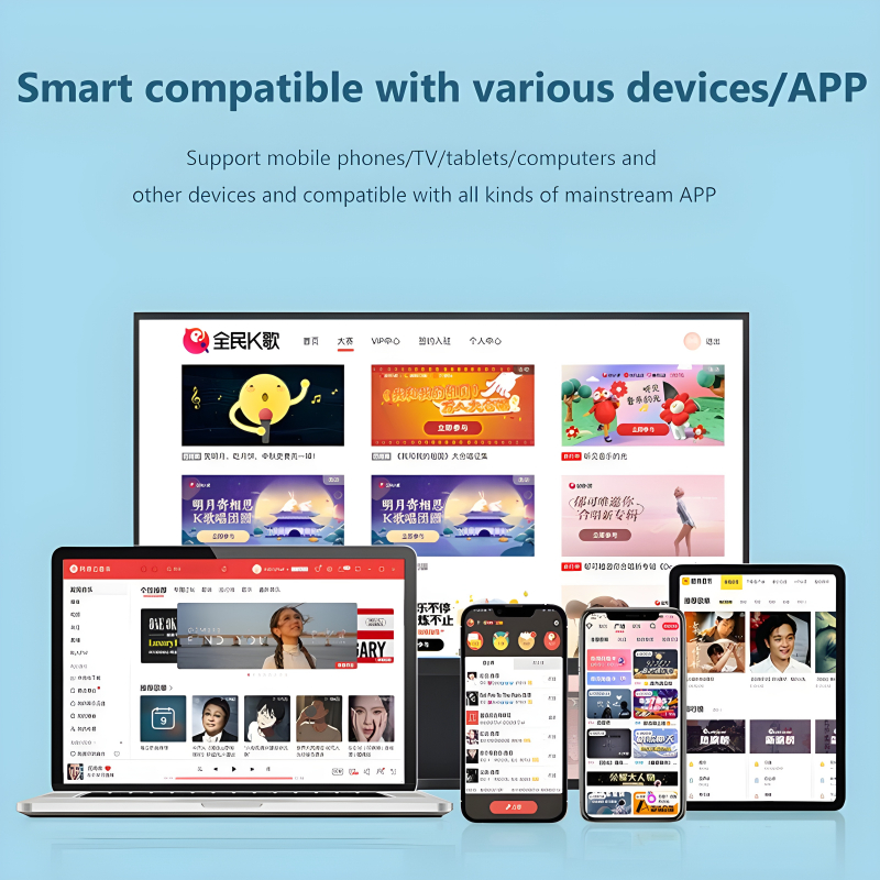 Engage in interactive karaoke sessions with friends and family using the KTV mode, professional mode, and magical sound effects.